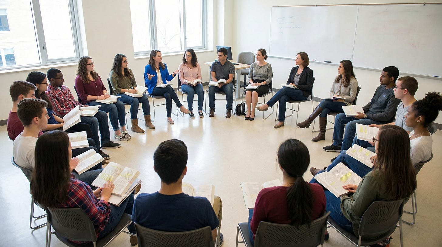 Think of a courtroom jury deliberation as depicted in films like 12 Angry Men. The power of that format comes from the fact that jurors must convince each other, not perform for a judge. The same dynamic operates in a well-run circle discussion. Students quickly learn that empty rhetoric or unsupported claims won’t survive group scrutiny.
