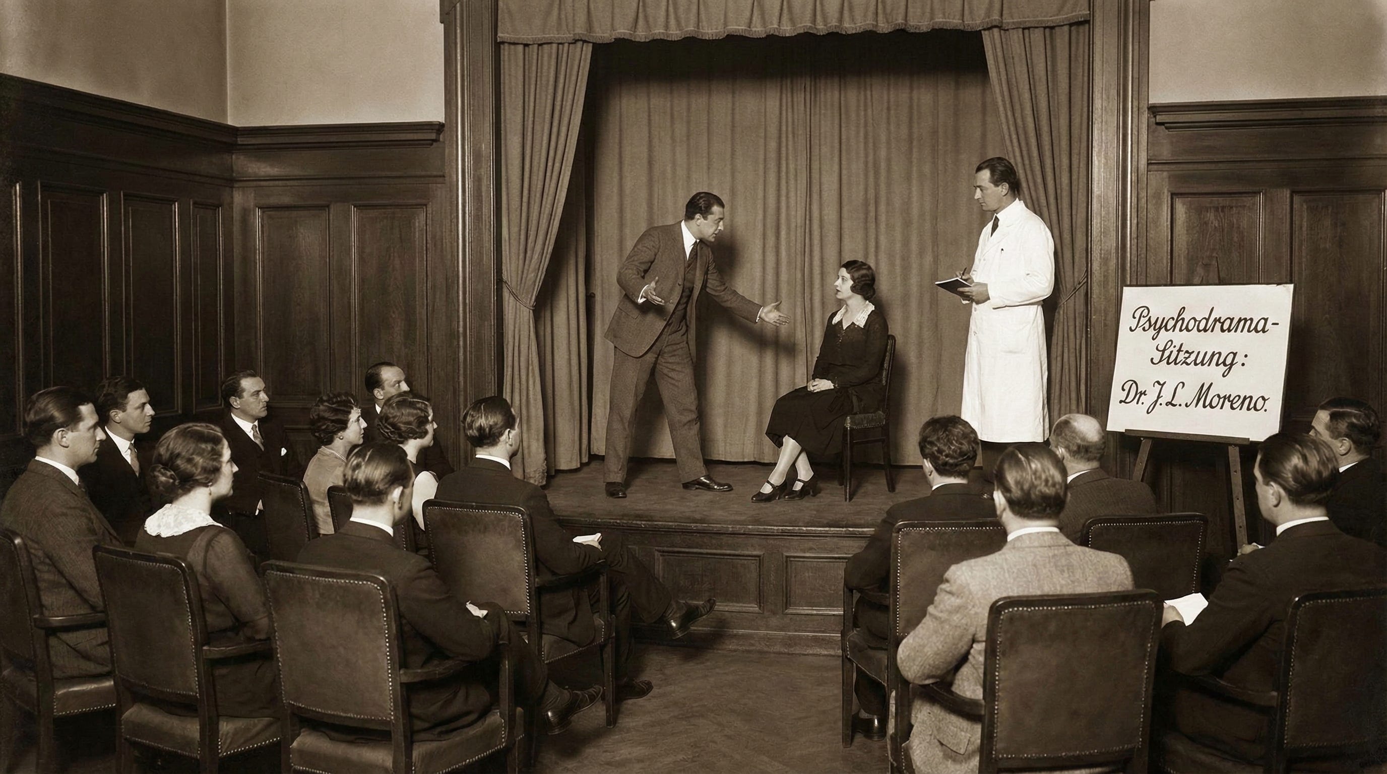 The intellectual bedrock lies in the work of Jacob L. Moreno, a Viennese psychiatrist who, in the 1920s, developed psychodrama as a therapeutic technique. While Freud emphasized the excavation of the past through talk, Moreno insisted on the power of the present through action. Patients did not merely describe their conflicts; they enacted them on a stage, with trained auxiliaries playing significant figures in their lives. Moreno’s insight was that we learn who we are by trying on different social masks—that role-playing initiates the emergence of the self. This insight would prove foundational. He also developed the structural vocabulary that role-playing assessment still uses: the protagonist (the subject being assessed), the auxiliary ego (the supporting actor who facilitates the scenario, often also called the confederate), and the director (the educator who controls the simulation).
