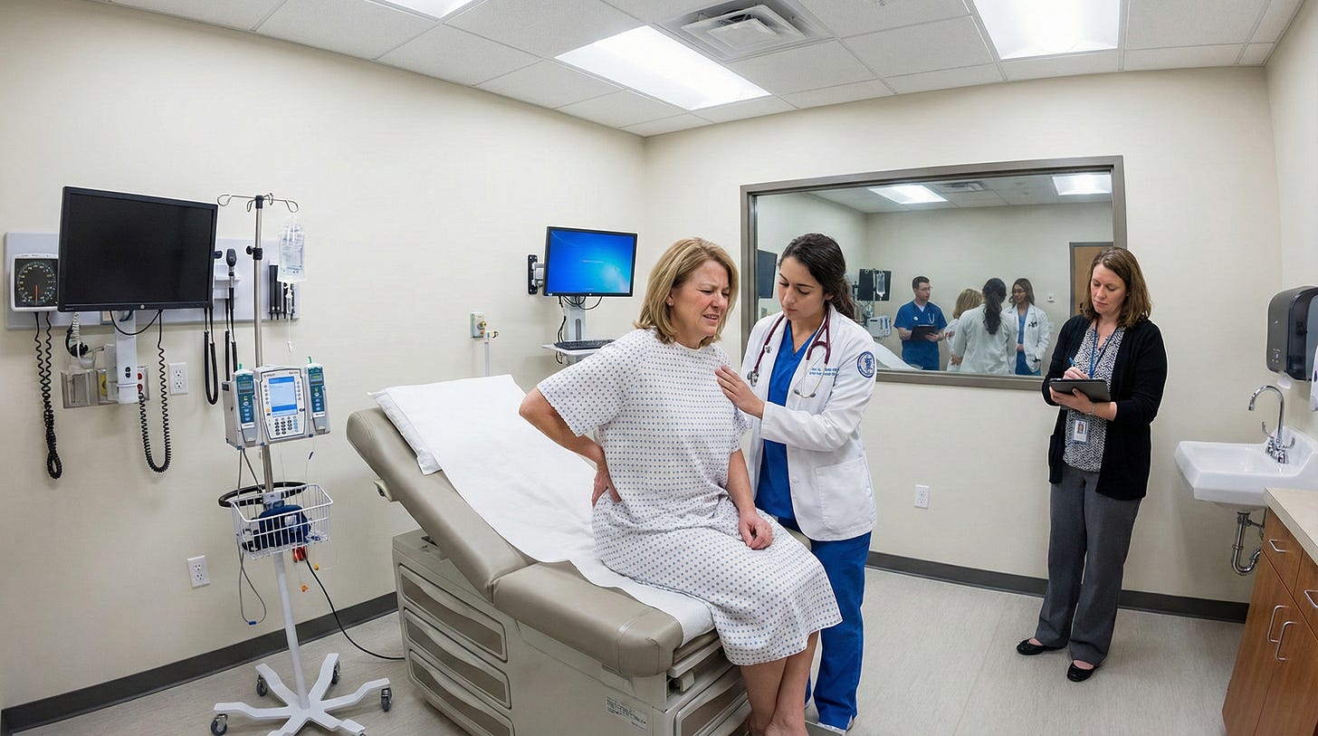 Consider what happens in a well-designed clinical simulation. A medical student enters a room to find an actor portraying a fifty-five-year-old construction worker with back pain who is skeptical of medication and worried about losing his job. The student must gather a medical history while building rapport. The “patient” may become evasive when asked about alcohol use. He may express frustration when the student suggests imaging studies that would require time off work. The student must read these cues in real time—the tightened jaw, the averted gaze, the shift in posture—and adjust their approach accordingly.