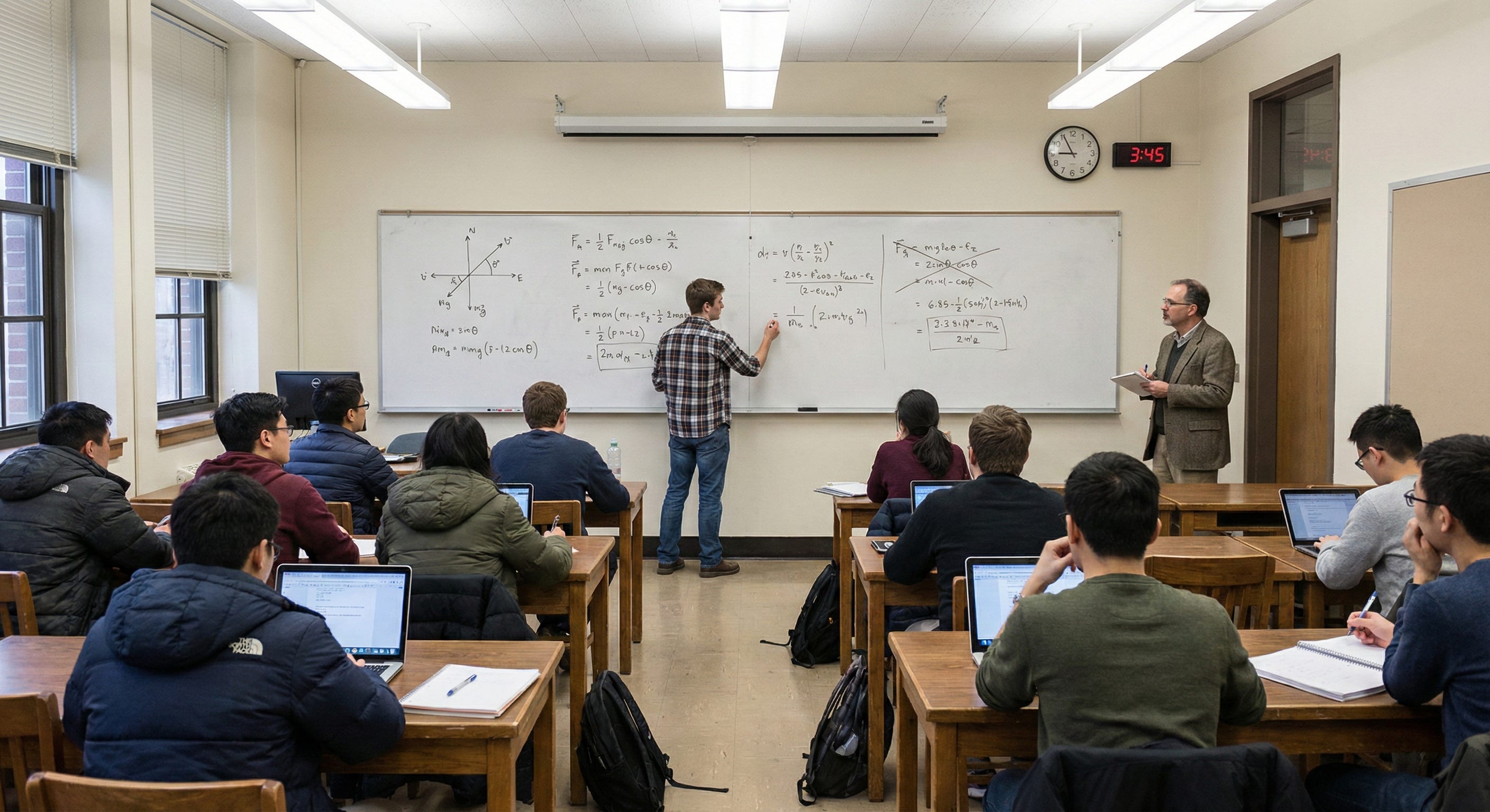 The evaluation here is high-resolution. The instructor tracks not just whether the student arrives at correct answers but how they get there: Do they work systematically or jump around? Do they check their work? Do they recognize when they’ve made an error? This format proves particularly valuable for identifying specific misconceptions that written exams often mask. A student might arrive at a correct answer through compensating errors that cancel out, appearing competent on paper while harboring fundamental misunderstandings. The live defense exposes these hidden gaps.