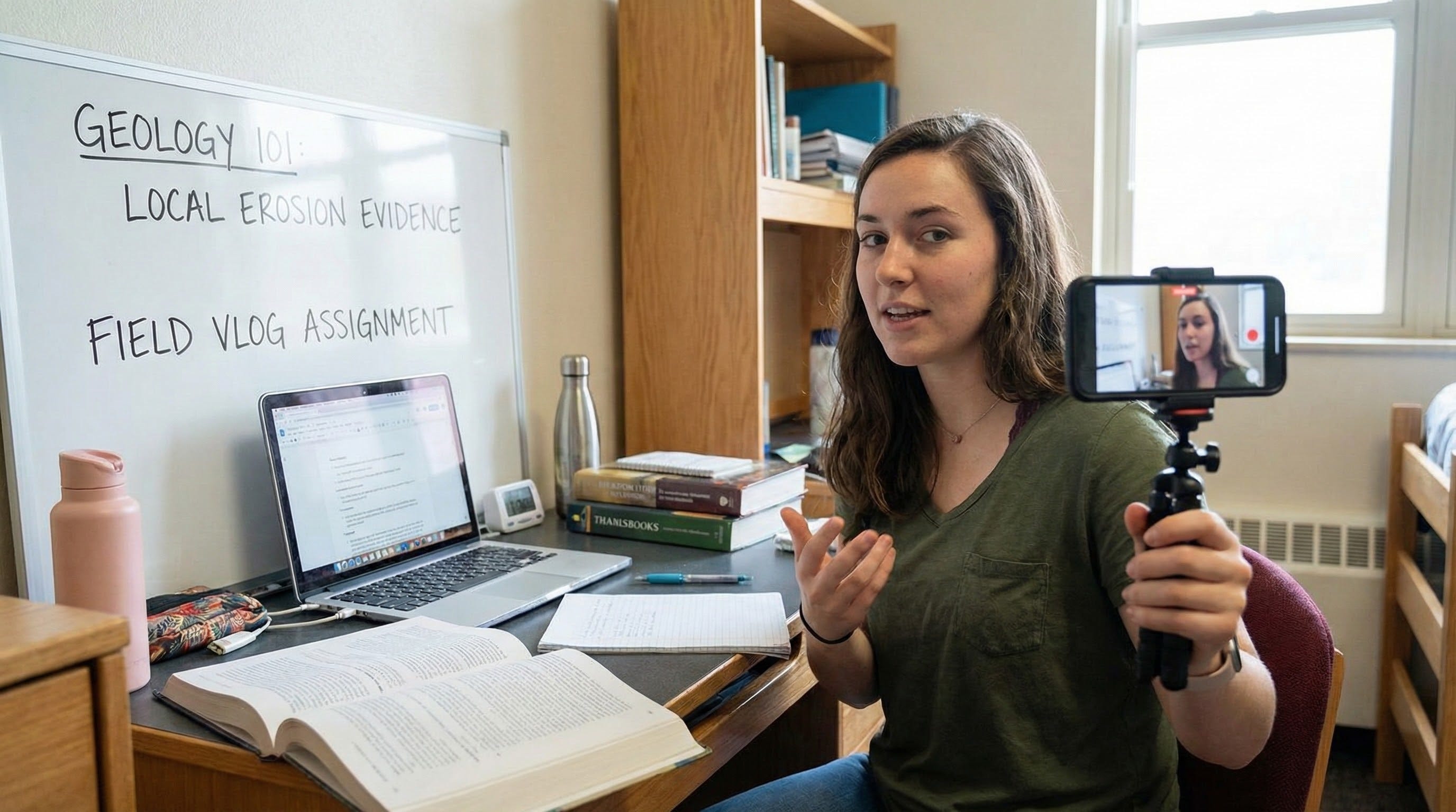 The educational vlog—the video log—offers a practical alternative. Students record themselves thinking aloud, explaining concepts, demonstrating processes, or reflecting on learning experiences. Unlike text, video preserves the embodied reality of thinking: the visible struggle to articulate complex ideas in a physical presence that anchors assessment in a particular person and moment.